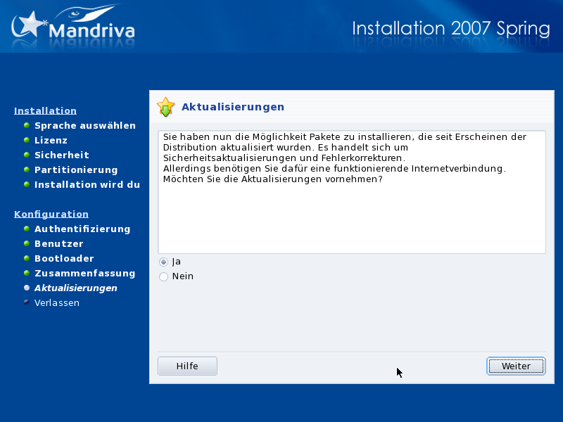 Es ist sehr wahrscheinlich, dass zum Zeitpunkt Ihrer Mandriva Linux Installation bereits einige der enthaltenen Pakete aktualisiert wurden. In der Zwischenzeit können Fehler entdeckt und bereinigt worden sein oder man hat Sicherheitslücken beseitigt.