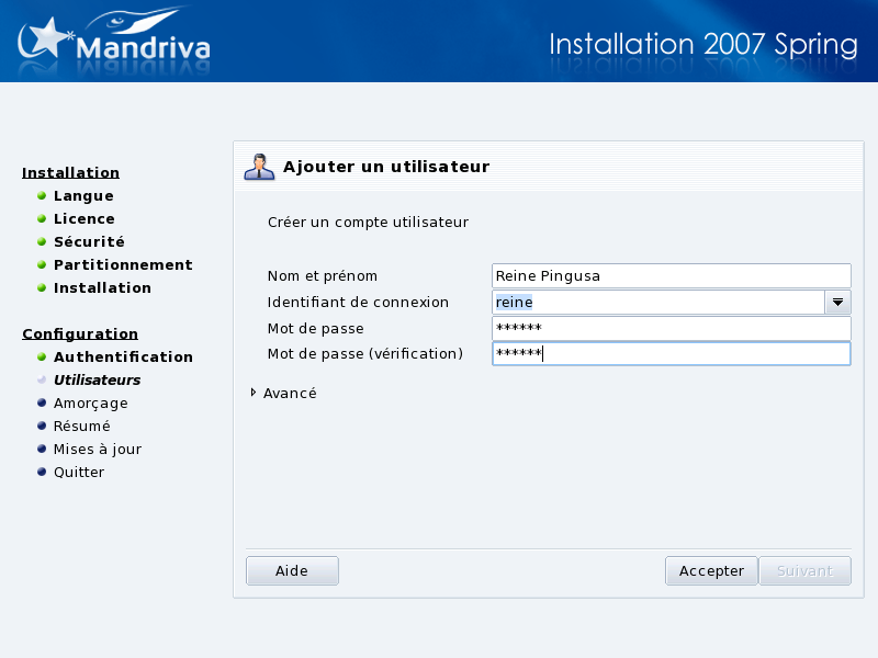 entrer le vrai nom de la personne. DrakX prend le premier