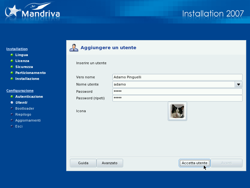 chiesto di inserire il vostro vero nome. DrakX prenderà la